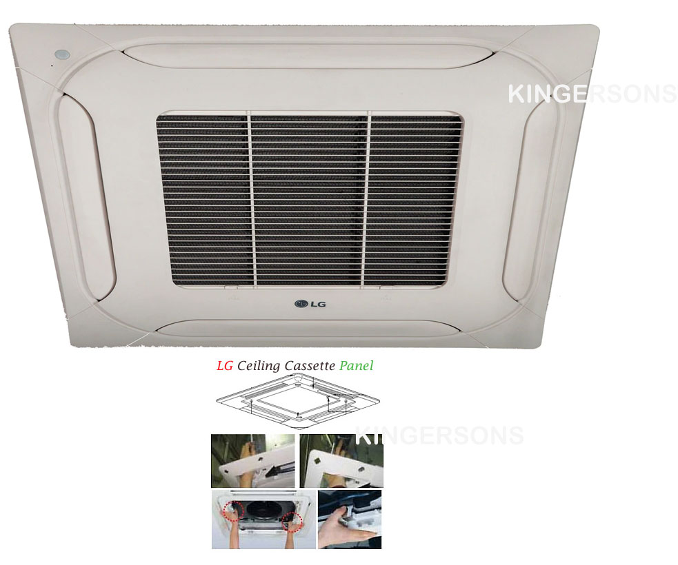 A front grille is required for all 4-way ceiling cassette units. This grille will fit LCN series units. The LCN ceiling cassettes are used with the LG Single and Multi-Zone Systems the grille is for use on LCN098, LCN128 and LCN188 ceiling cassettes. It is also for use with the LMCN078HV ceiling cassette, which is used only with multi-zone systems. The PT-QCHW0 is a true 2x2 decorative grille and covers the inner working of the ceiling cassette unit as well as the ceiling cut-out. Air flow is directed through the grille cover. The new design of the ceiling grille allows for reduced airflow resistance and offers an improved look as well. Additionally, it includes a green status indicator light versus the previous red status light. The actual dimensions of this grille cover are 24-7/16" x 24-716".