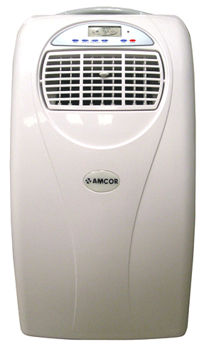 The Amcor ALTL12000 EH portable air conditioner is designed to fit most average-size rooms up to 400sq.ft. This model also functions as a 65 pint dehumidifier.